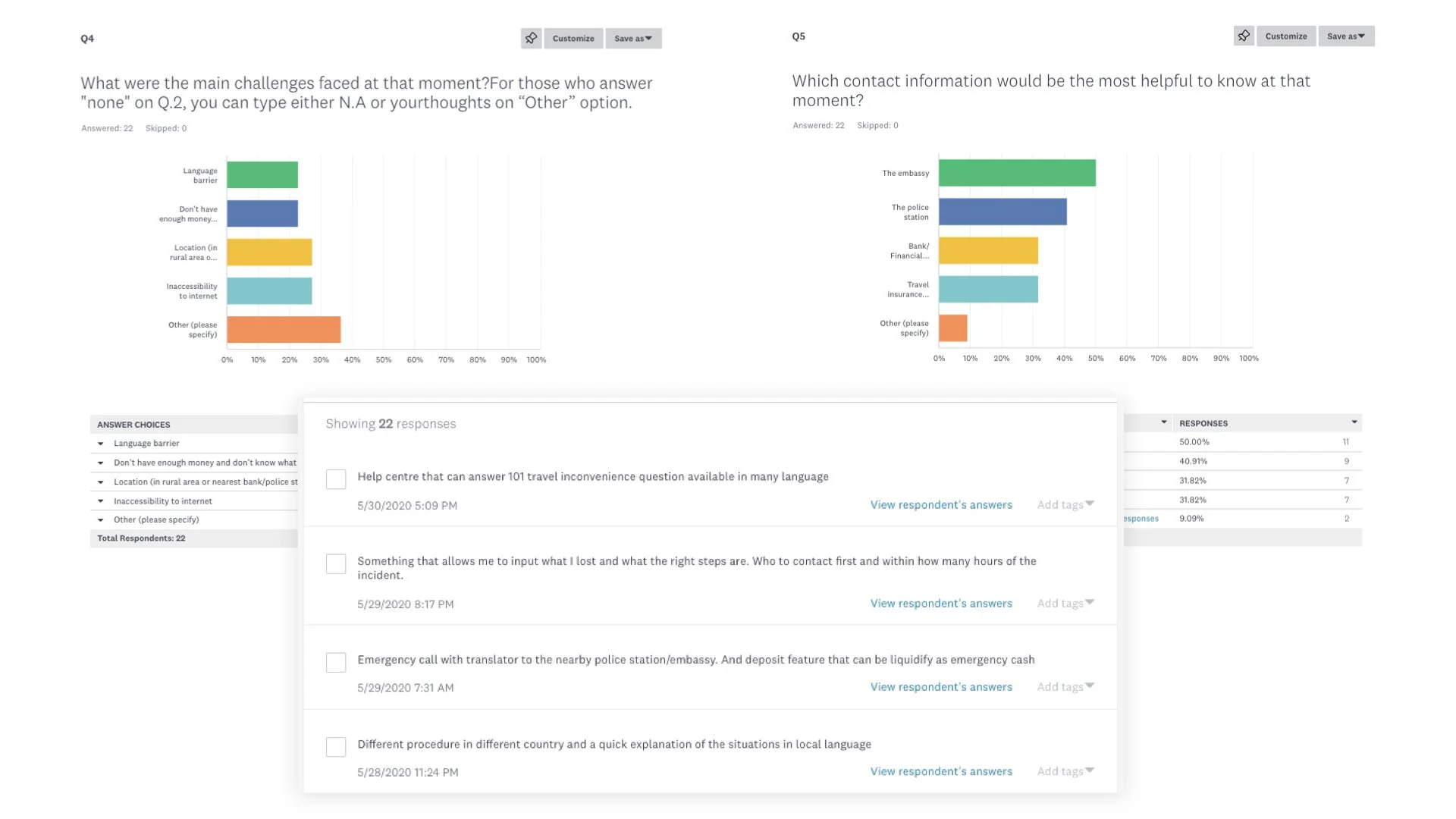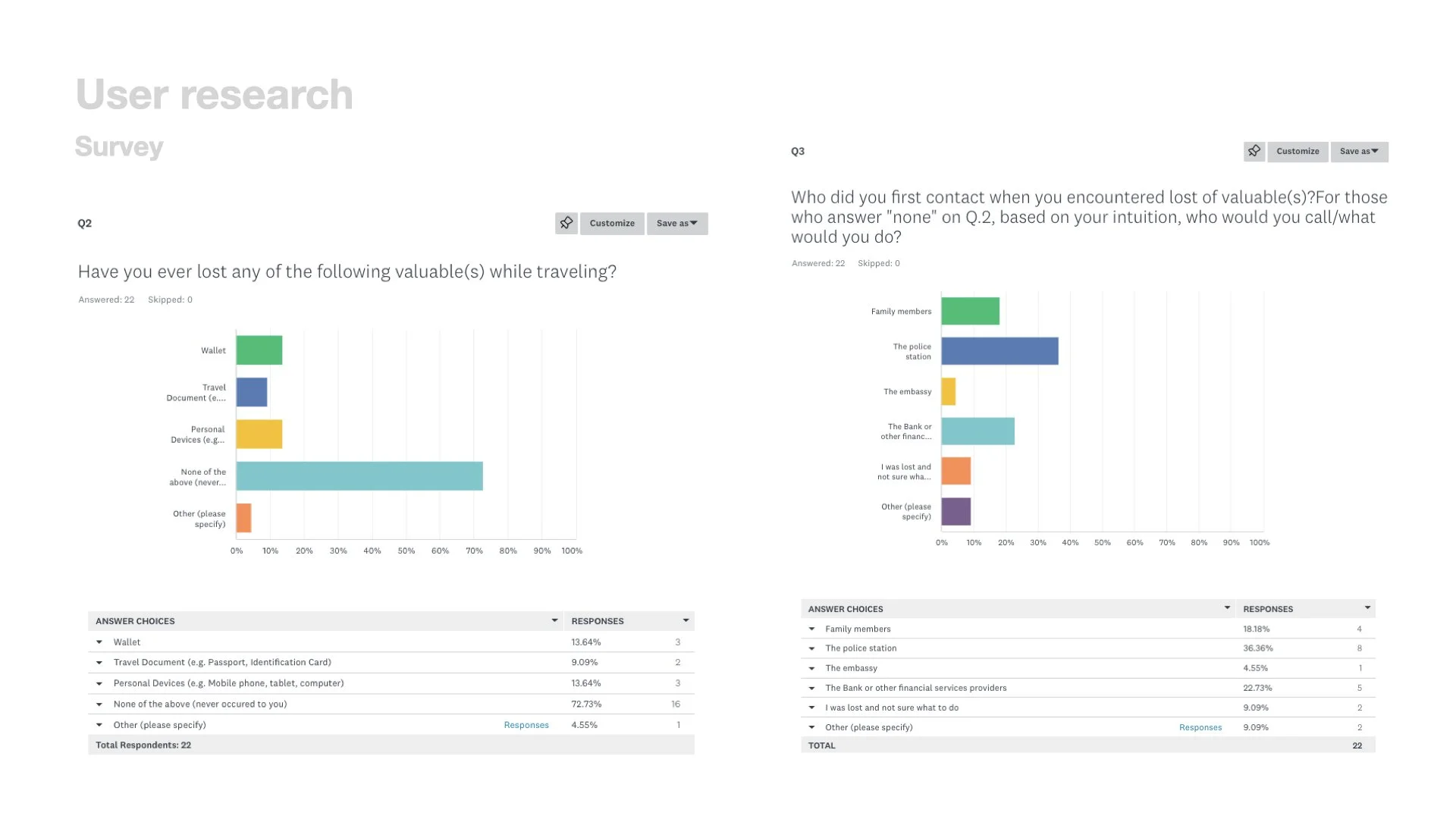 The combination of my experience and these findings inspired me to work on this project. I started off by creating a simple survey to understand travellers' pain points and challenges when they encountered travel inconveniences.